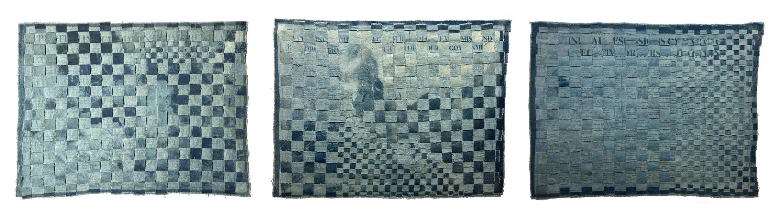 Woven cyanotype prints on canvas